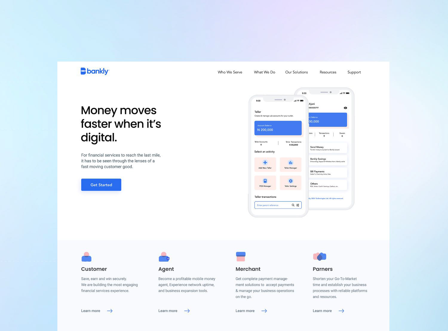 Bankly is a fintech company headquartered in Lagos, Nigeria, that has been transforming the lives of Nigeria’s 47.4M financially underserved adults since its launch in 2017. With the goal of making financial services more accessible, Bankly created a network of direct and partner agents to digitize cash and reduce the risks associated with physical savings—such as fraud, theft, and losses. After securing $2 million in seed funding, Bankly needed a fresh, strong brand identity to scale its operations and grow its 35,000-strong customer base in cash-dependent communities.